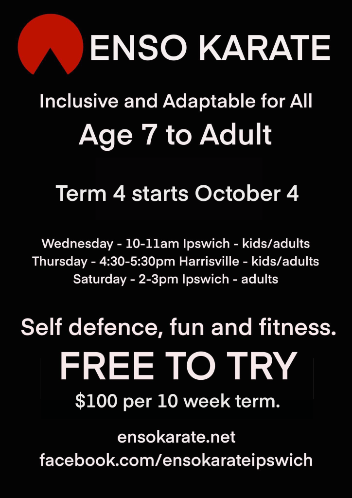 Term 4 starts this week and this marks 5 years of Enso Karate. With the intention of providing martial arts in an inclusive, adaptive and welcoming environment, Enso Karate was formed in October 2018. The school continues to grow and evolve with several members recently achieving brown belt, the introduction of kobudo weapons, and my continual experimentation to improve teaching and methods of progression for students.