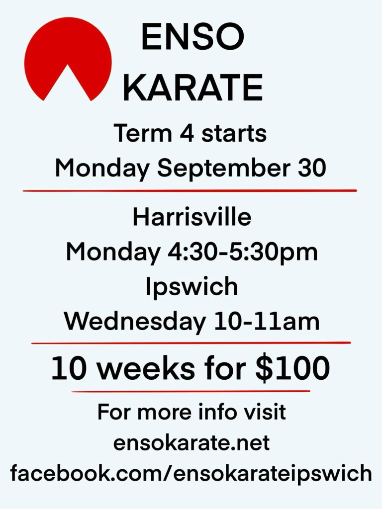 Notable grading events coming up this term include a brown belt test at the Ipswich dojo, a brown/black stripe test at the Harrisville dojo and to end the year, our first black belt test at the Harrisville dojo.
